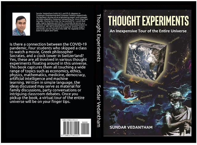 Is there a connection between the COVID-19 pandemic, four students who skipped a class to watch a movie, Greek philosopher Socrates, and a clock tower in Switzerland? Yes, these are all involved in various thought experiments floating around in this universe. A new book titled "Thought Experiments - An Inexpensive Tour of the Entire Universe" captures them all touching a wide range of topics such as economics, ethics, physics, mathematics, medicine, democracy, artificial intelligence and machine learning. Carrying about three years' worth of my work, written in simple language, the ideas discussed in this book may serve as material for family discussions during this lock down, party conversations with friends or intriguing classroom debates. Once you get the book, a virtual tour of the entire universe will be on your fingertips. Consider jumping on board to support the cause.